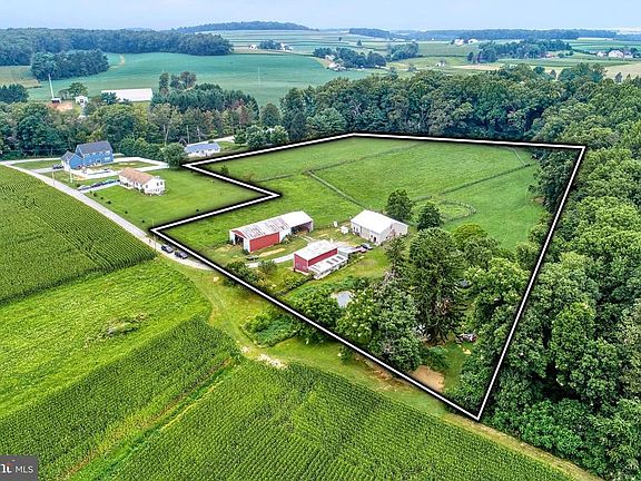 This is your chance at having your own piece of country living! This 2 bedroom 1 bathroom Farmhouse situated only miles from 83 and Maryland, in Southern York County is nestled on 6.8 acres; complete with large block garage, multiple outbuildings, original outdoor summer kitchen and a small pond with walk-bridge. Featuring acres of fenced pastures, riding ring and single-stall barn with built-in chicken coop, this land is ready to accommodate all of your furry friends. Large detached 2,000 sq. ft block garage with finished cement floors and 16 ft. wide door. From cement floor to ceiling rafters 13 1/2 ft clearance, outfitted with two fuel tanks with working pumps, 110 & 220 volt outlets; the possibilities are endless. With a new roof and rain gutters, new furnace, upgraded kitchen appliances and renovated bathroom, along with it's charm and picturesque landscape, you will see why country living is for you!