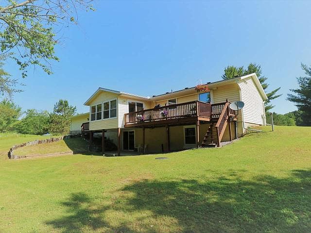 MANUEL LAKE HOME & ACREAGE - Immaculate home on Manuel Lake with over 14 wooded acres provides excellent privacy. This 3 bedroom, 3 bathroom home has been meticulously maintained with new carpet, laminate flooring and a fresh coat of paint. Main level living with large master bedroom and master bath, first floor laundry, 2nd full bath, brick fireplace and eat in kitchen lend itself to easy living. The large deck is perfect for relaxing and taking in the scenery of the wooded yard. Two car attached garage and full walk out basement lends to plenty of storage, or basement can be finished for future living space.
