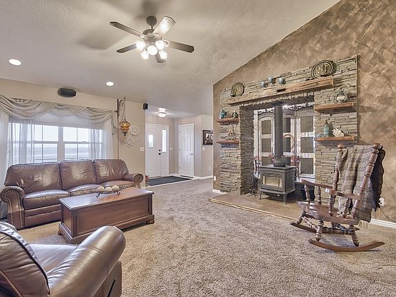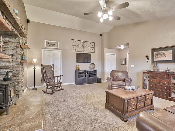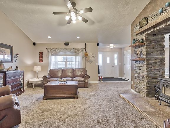 Rural Rigby property with no covenants! Located North of Rigby this home sits on over 1 acre and provides plenty of room for trailers, as well as ability to have horses. From the tiled entry of your new home, you are greeted with the living room featuring vaulted ceilings, and a wood stove framed by a beautiful stacked stone surround. There is also a family room located on the other side of the living room, which also provides you with plenty of space to be used for a dining room. The common spaces have been treated to newer carpet, as well as paint. From the dining area you will find the kitchen which features alder cabinetry, a spacious pantry, and vaulted ceilings. The split bedroom floor plan provides you with a large master bedroom with a sliding door to access the back yard, as well as a spacious master bathroom featuring an alder double vanity, tile floors and walk-in shower. The other side of the home features 3 additional bedrooms, as well as a full bathroom. You will have plenty of storage and parking space with your attached 4 car garage, as well as concrete RV pad. If you are looking for an affordable, rural property this is one you will want to see!