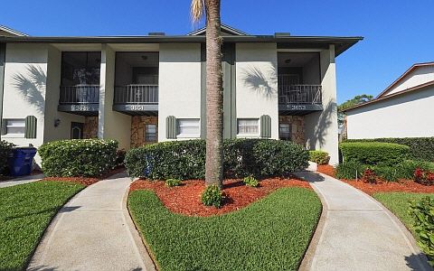 AWESOME townhouse overlooking both the golf course and private pool in the back yard, and wooded park & large pond in the front! End unit. This townhouse features 2 Master Suites upstairs! Each one has a private screened balcony and full bath. One of the masters has a walk in closet and bathtub in the on-suite. The other has a large closet and walk in shower in the on-suite. Both bedrooms are over sized and offer lots of space. Downstairs is completely tiled (no carpet) and you have a half bath, sunken living room, formal dining room and spacious kitchen. Great floor plan. The kitchen has a pass through and bar overlooking the dining and living room, allowing for the cook to still be involved in whats happening while cooking! Screen porch. Enjoy the bak yard private pool that is exclusive to this building as well as a covered bar-b-q area with seating and tables and chairs. A great space to entertain. Nice well cared for unit.