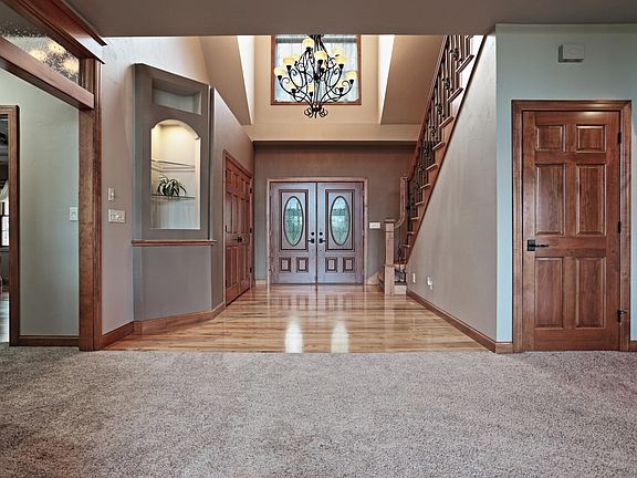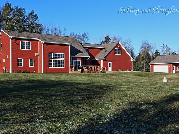 This is home to 3.5 beautifully landscaped acres where outdoor amenities include a 100' x 50' stocked fish pond, deck, patio, audio, front porch and ''wild side'' nature trail (cross creek at footbridge to explore NE ''wild side'' of the property). Spacious foyer is a warm welcome of exquisite maple and hickory millwork, stunning views, soaring ceilings, and open design. 4,823sqft of custom quality finished living space; this Branch River Estates home is more than main floor laundry, 3.5 bathrooms, granite, main floor master suite, hardwood floors, plush carpets, wet bar plumbing, front and back staircases, basement kitchenette, 3car attached garage + 2car detached, more than great Valders Schools, proximity to golf & I-43, newer siding/shingles/furnace/etc. This is home.