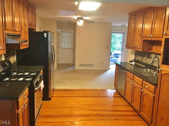 Move Right In! You will love this Well-Maintained & neat Approx. 1638 sq. ft. Ranch, Great Open Floorplan with F/P & vaulted ceiling in Family Rm, H.W. Floors in Foyer, Kit. Dining area & Sunroom, Nice upgraded kit, Granite Countertops, SS Appl. , New ceiling fans thru-out, new upgraded sliding door with built in blinds, new Front Door, new Storm Door, new garage door, Lg. well-built Deck off Sunroom & Master Br. overlooking private back yd. Split Br Plan. Side Entry 2-car garage. In-ground Sprinkler System. Walking distance to the New Elem. School opening soon. Lg. Corner Lot in very Nice Subd. Close to I-285 & shopping. Won't Last!!