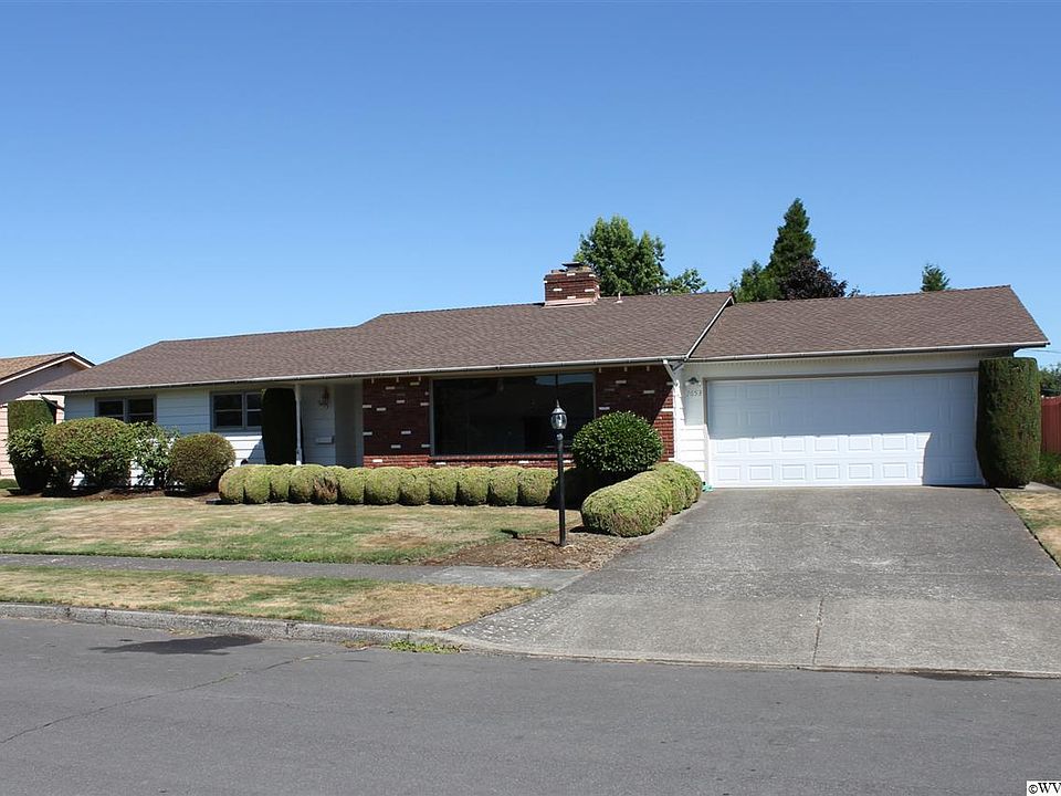Welcome home to this great ranch with newer roof, paint, carpets and oak hardwood floors. Huge Living w/ fireplace and family room w/ fireplace too. Bedrooms have oak hardwoods and master suite with full bath! The yard is professionally landscaped with raise beds and huge covered patio. The oversized garage has room for toys. Cabinets and large workbench included. This home in great condition and move in ready in a quiet neighborhood close to I-5 and shopping.