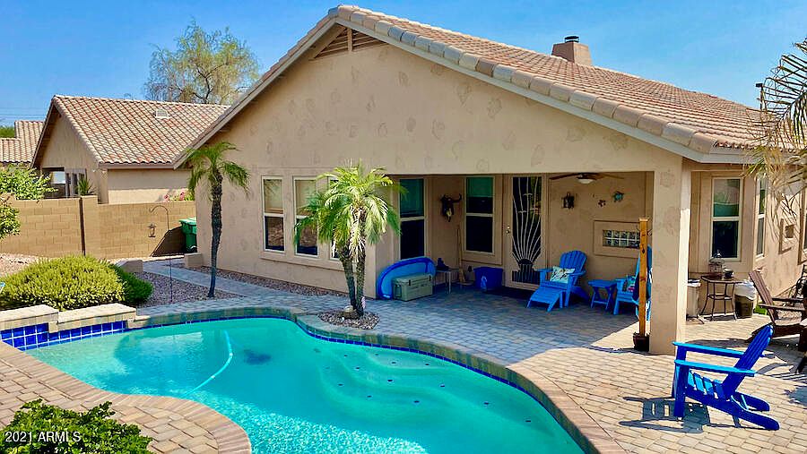 * Outstanding home with distinctive touches and updates throughout. High arches that invite you as you enter combine with vaulted ceilings through the entire home to make this place feel even more spacious than SqFt suggests. One of the most desirable features is a backyard designed to relish spending time in, with a refreshing pebble-tech pool that will be calling your name, elegantly paved patio and deck, and an extra tall block fence for added privacy. French double-doors welcome you into the main bedroom; bathroom boasts a stand-alone soaking tub to relax in, and a walk-in closet with an abundance of space that will pleasantly surprise you! Attention to detail is evident from the moment you step in and as you walk throughout this clean and well-cared for home. Potential to be a member of