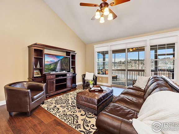 Under Contract. Showings ONLY for Buyers interested in backup position. Rarely available, sprawling custom ranch on Meadowbrook Ridge with breathtaking views of the meadow and pond, majestic wildlife, foothills & snow-capped peaks. This impressive home welcomes you and your guests into an open, expansive great room featuring a beautiful kitchen, living & dining area with a wall of windows & slider doors to show off the views. Primary Suite is a private sanctuary on one side of the home. Two more bedrooms, a main bath and laundry/mud-room w/access to the oversized & finished 3 car garage complete the main floor. Basement is finished with large theatre area & wet-bar, two additional bedrooms and a large bath. Walk out to your amazing back yard oasis with covered hot-tub, gardens and more of that amazing view. Easy walk to 64 Acre Mehaffey Park offering pickle-ball & tennis, skate park, water feature, playground, dog park and more. This is Colorado living at its finest.