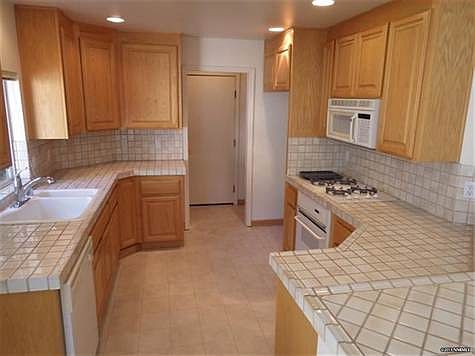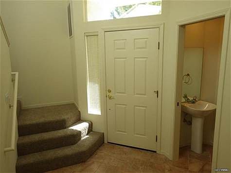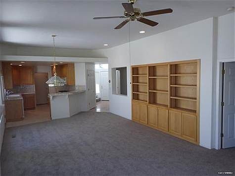 On the end. Marble floor when you first walk in and all new carpet, big family/living room combo with built in bookcases and cabinets as well as a fireplace with mantle and high ceilings with fan. Laundry room and master bed on ground level. Very private outdoor deck also an enclosed sunroom patio with all glass and a hot tub. Beautiful views of mountains and open area facing the South, West and North. This will be an easy place to call Home. Clean and tidy, ready for move in. New microwave on order. Brokered And Advertised By: Harcourts NV1 Realty Listing Agent: Lex Moser
