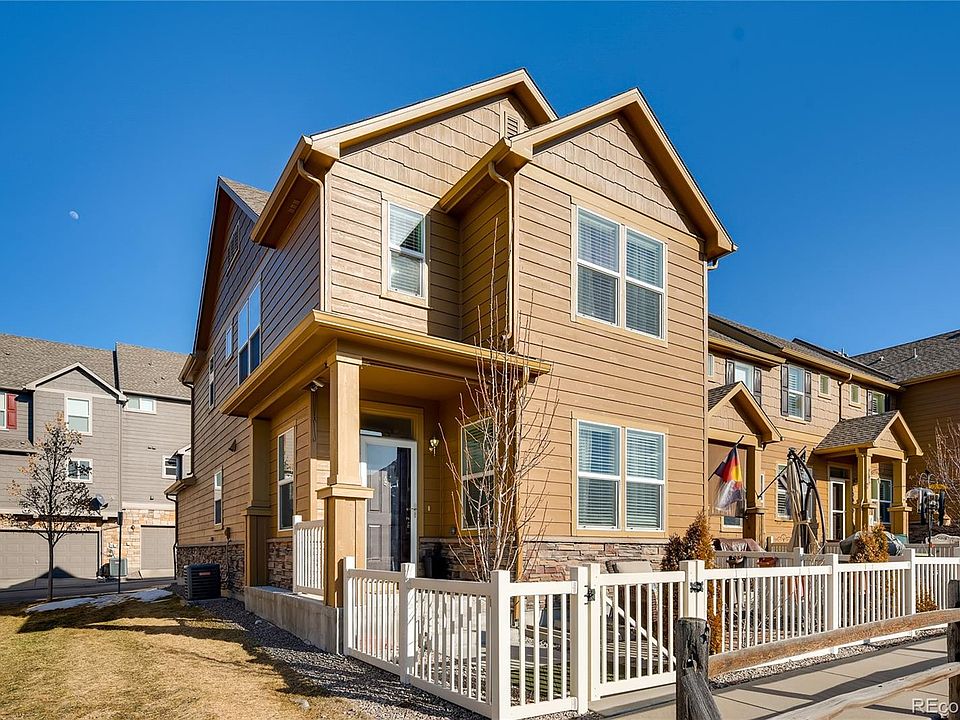 Beautiful end unit in Morgan's Run with spectacular mountain views! Walking in you will find the light and bright living room with laminate wood floors and gas fireplace. The gas fireplace continues into the dining room right off the kitchen. The kitchen has granite countertops with an extended bar top, black appliances, and oak cabinets. There is a laundry and half bathroom right off of the kitchen and access to your spacious two car attached garage. The views continue upstairs in the loft which is spacious enough for a sitting area or desk! The master bedroom has an ensuite 5 piece bathroom with soaker tub, double vanities, and shower. There are two additional good size bedrooms with a full bathroom and a loft upstairs. Minutes to the hospital, shopping, restaurants and I-25. Enjoy all that the Meadows has to offer with clubhouse, community pool, parks, and trails and near the Native Legend Trail open space! Great bike paths and hiking right outside your door! Highly acclaimed and sought after Douglas County schools. Enjoy full access to the Grange pool, Taft House pool and the many other programs and amenities this luxury community has to offer. Come experience for yourself, townhome living in style!