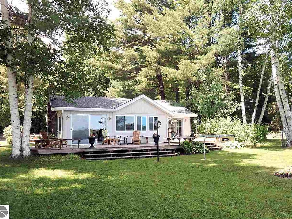Are you in search of a beautiful year round retirement home? Or a spacious home for making great memories with friends, family and grandchildren on a top notch 125' wide lakefront lot on all sports Cedar Lake? With this property you see pride of ownership, inside and out. Catch bass off the doc, watch the little ones play in the sandy beach swimming area or on the play set while you lounge on either the large lakeside or side yard decks. You are protected from the noise of Cedar Lake Road with this 500' deep nicely wooded lot. Inside you will find a kitchen with quality hickory cabinets, open to the dining area and large living room featuring a cultured fieldstone gas fireplace with numerous windows looking out to the lake. Add to that a bath with direct access from the master bedroom that has french doors leading out to the hot tub on the third deck. Then to the rear of the home are three more bedrooms, another bath and a second family room providing a quiet area away from other activities and you have your "up north" lakeside dream home.