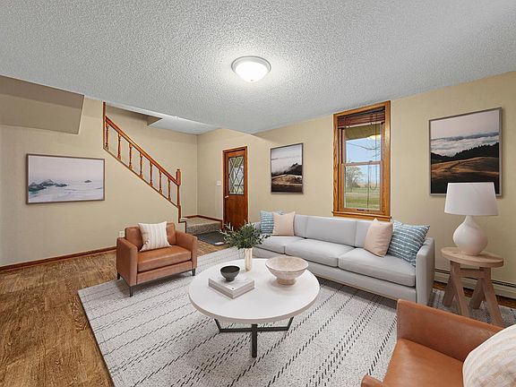 Just over an acre, but miles and miles of peaceful views of woods, fields and countryside, you'll find this modern farmhouse less than 30 miles from Mankato, and approximately 30 miles from southern metro. Stepping inside, you'll find an open Kitchen and Dining area. The Kitchen, aesthetically pleasing, with Granite countertops, Delta Faucet, Greige cabinets, Champagne gold hardware, white subway tile backsplash and warm chocolate toned plank flooring. Also, the Kitchen is well functioning with a large pantry, plenty of storage, and a 2025 stove and microwave. The exclusive front living room is generous in size, and has wonderful light facing the East. The main level also homes a full bathroom and bedroom. Upstairs you'll find the second bathroom with loads of storage, two additional bedrooms, one particularly with a large walk-in closet, and hallway storage. The lower level has two large rooms, one with washer/dryer and mechanicals. The second room, is very sizeable, and ready for a new owner's desire- it would make a great family room, game room, office or work-out area. The green space breathes life and vibrancy with the mature trees, bushes, and a lush, usable one-acre yard to enjoy evening bonfires, or summer gardens. In addition, this property has a detached storage shed, attached storage shed and a one car garage. The septic is compliant.