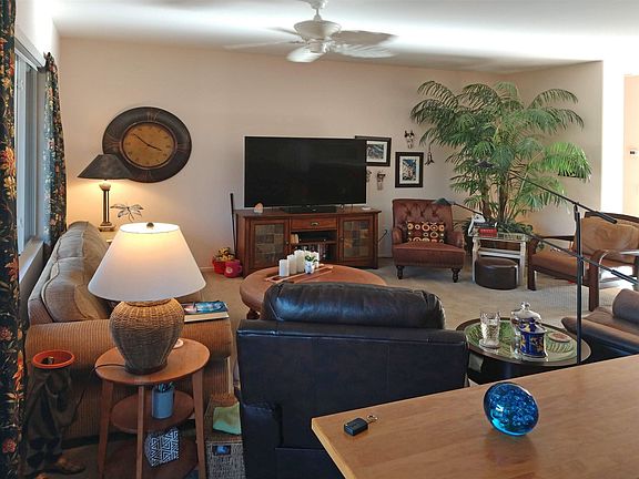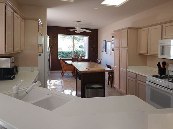 Sneak peak before professional photos! This highly sought after Montego model has a CASITA, a gated courtyard and a gorgeous tropical private backyard. The kitchen is open to the living room and dining room and has a breakfast table that views the beautiful desert landscape out front. It has a new fridge, dishwasher and disposal and nice white Corian counters. The maple cabinets have pull-outs and a recipe desk. The custom-built rolling center island is included. The extended master bedroom has a door out to the east facing back patio and the bathroom has a dual vanity, walk-in shower and walk-in closet. The guest wing is on the opposite side of the home for maximum privacy and has a den, bedroom and a full bath. The laundry room has cabinets and the washer and dryet are included. The CASITA has it's own entrance and full bath, perfect for guests or a caregiver to have their own space. The window coverings are classy sheer Silhouette roller blinds. The large backyard has beautiful tropical landscaping, a built-in BBQ, fountain, fruit trees, and a fire table. The garage has lots of storage and work benches, a new remote pad and garage door opener, newer hot water tank with recirculating pump, and the main A/C has been totally refurbished. Furnishings are negotiable outside of escrow.