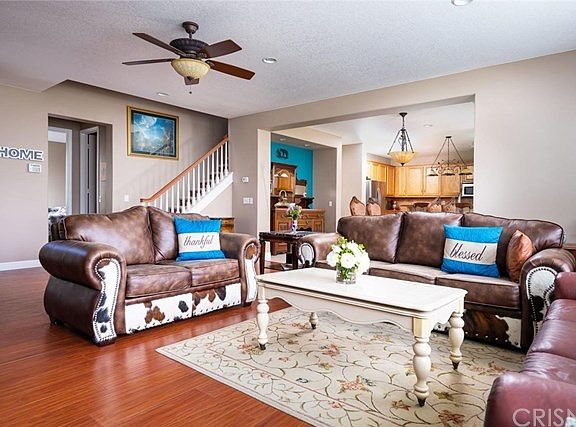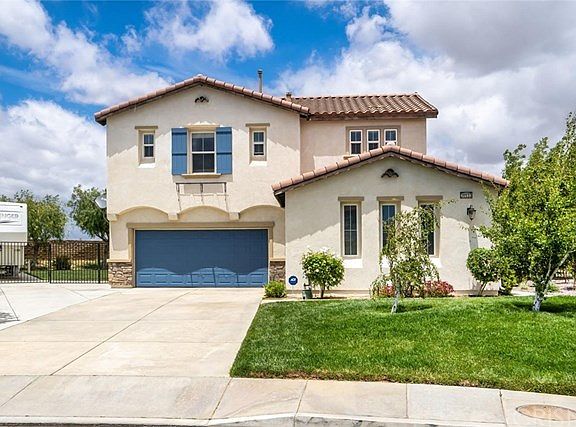 Beautiful manicured two story, 4 Bedroom, 3 Bath home on a large lot in Mountain View Ranch. Welcoming entry, spacious family room w/fireplace, large dining area & kitchen with bar counter. Large master suite with walk-in closet & views from the walk out deck. Master bath has Versailles tile on the floor, limestone tile in the shower & on countertops, vessel sinks & a soaking tub. Upstairs laundry room w/storage & sink. The extra large backyard offers fruit & shade trees & relaxing places under the 330 sq.ft.covered patio, great for your grilling parties & relax in the backyard spa tub under the gazebo. Widened reinforced driveway & RV pad W/50 amp service. Plenty of storage cabinets in the 3 car garage. Come see this charming home.