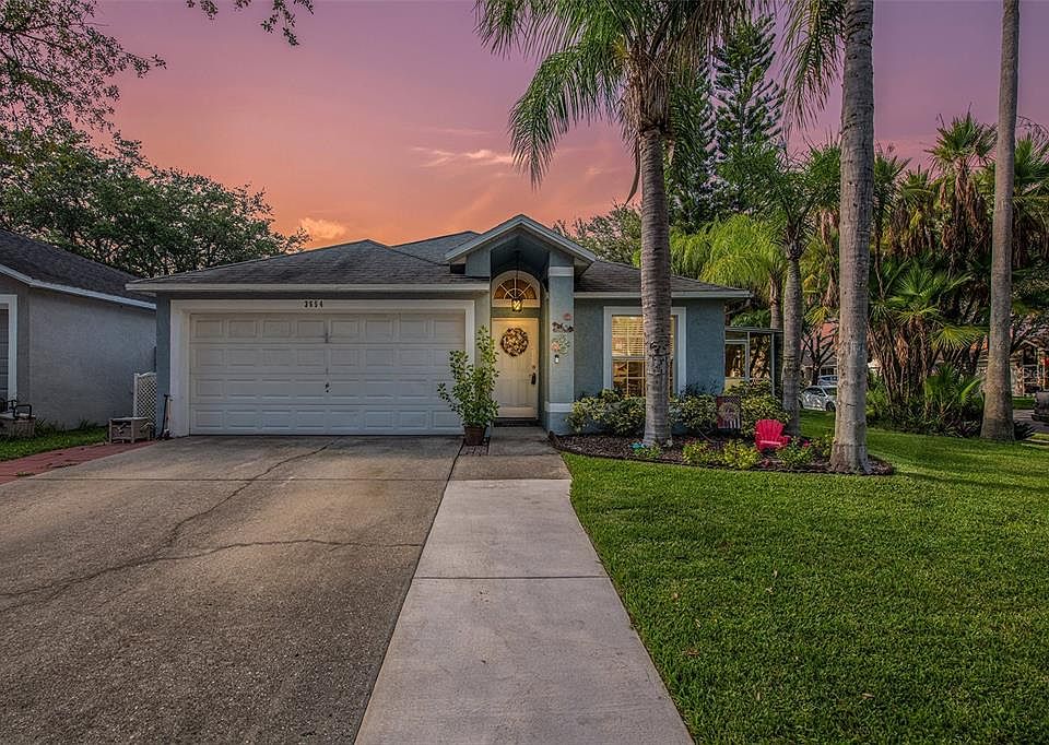 GREAT LOCATION! This gem is located in the community of Countryside Palms! Easily accessible to tons of shopping, restaurants and minutes away from Florida's beautiful gulf coast beaches. The community offers bike and walking trails and a community pool! Nestled on a corner lot with tons of curb appeal this beauty is ready for you to enter, fall in love and make it your own! The interior of this delightful home boasts a thoughtfully open concept design featuring 3 bedrooms and 2 bathrooms. One of the many highlights of this home is the vaulted ceilings in the Livingroom/dining room combo that has tons of natural lighting that is spacious and offers ample room for entertaining with family and/or friends, yet cozy enough for just relaxing. The kitchen features updated counters and cabinets with stainless steel appliances, and a breakfast bar for seating. The oversized master suite is gorgeous with its high ceilings and a walk in closet. The master bathroom has been recently remodeled to include a walk-in shower. The home also has a fenced in yard for privacy and a tranquil screened lanai perfect. One last thing, remember the community pool? It's across the street from this perfect home!!! This Palm Harbor home offers a unique combination of serene living and contemporary convenience. From oversized corner lot to tasteful upgrades, the details have been carefully considered to offer you the lifestyle that a new home owner has been looking for. Hurry homes in this community don't last long, time is truly of the essence!