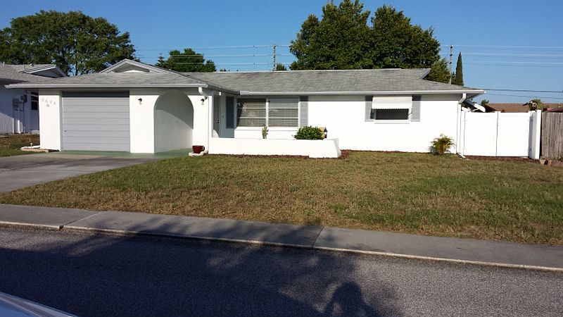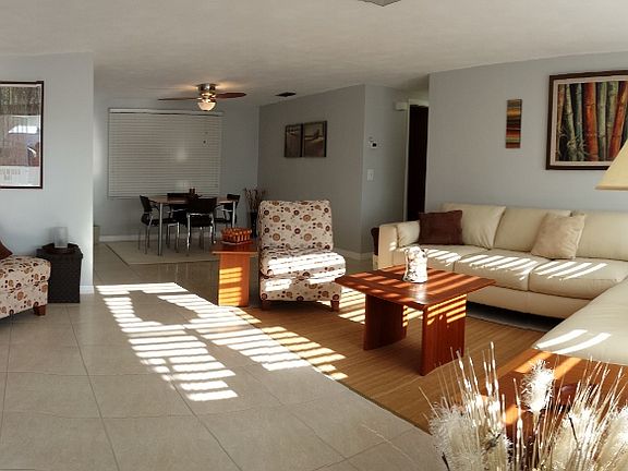 This updated 1310 s.f. 2/2/1 home has newer Amana A/C with transferable warranty, water heater replaced, 2013 new exterior painting and coatings, updated gutters/downspouts and no flood insurance is required. Modern 18 inch tile and new baseboards throughout. Large living room and dining area, Eat in kitchen with closet pantry. Large family room lead to enclosed screened porch with vinyl sliding windows. Kitchen and baths upgrades include windows, finishes, tile, tub, shower, toilet, plumbing, custom cabinetry, under cabinet and recessed lighting, matching stainless steel appliances, deep double sink with garbage disposal. Neutral paint throughout with matching blinds and celing fans. Dual pad drive way, oversized garage and privacy backyard fencing. Washer and dryer included.