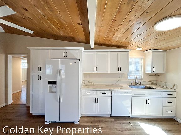 Stunning home in Carlsbad across from the beach! This spacious single-level home features wood flooring, vaulted wood ceilings, beautifully remodeled open-concept kitchen with quartz countertops, custom cabinets, and appliances, fresh interior paint, large laundry/utility room (washer/dryer hook-ups) with access to the backyard and garage, remodeled master bathroom, ceiling fans in all bedrooms, large fenced in front yard and backyard, and a 2-car attached garage. Rent includes landscaping. Located close to Downtown Carlsbad Village, the beach, shopping centers, and much more!