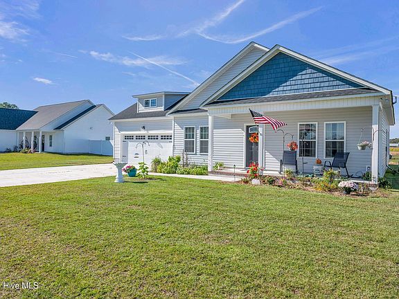 This beautiful home features three spacious bedrooms, two full bathrooms, a separate laundry room, granite countertops, soft-close cabinetry, and LVP flooring throughout. You'll also enjoy a two-car garage, a concrete driveway, and a quiet setting perfect for watching those beautiful Eastern NC sunsets.
