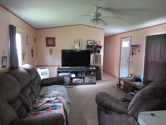 Just 6.5 miles to Town from this property. The 2008 mobile home has 3 bedrooms and 2 baths, a nice sized living room and kitchen and is situated out of the flood plain. Outside there's a large outbuilding with hardwood flooring,2 restrooms,bar and kitchen.The steel roof was just put on this year and it's being sided right now.This would make a terrific entertainment area or workshop or place to just hang out.