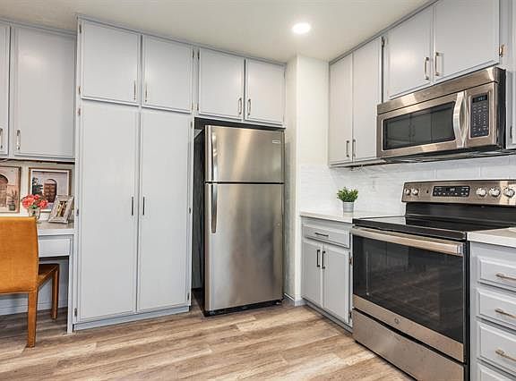 Central air & heat. 2 fireplaces, new garage door, new carpet & paint. Great countertop space in kitchen, many kitchen cabinets for storage w/ pantry & desk area. Great closet space, quiet culdesac, laundry room, walk to N Concord Bart, shopping & schools. Rose garden & low maintenance yard