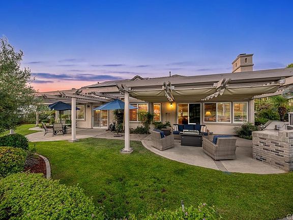 Nestled in the heart of the highly sought-after Steele Canyon Estates, this stunning single-level home offers a lifestyle of luxury and relaxation. Overlooking the scenic Vineyard Golf Course, with breathtaking views of holes 6 and 7, this property is the perfect blend of elegance and comfort. Step inside to an open floor plan adorned with recessed lighting, where the spacious living room beckons with its cozy updated fireplace and custom wine rack/display case—perfect for entertaining or unwinding after a day on the course. The kitchen boasts granite countertops, a Subzero refrigerator, a Bosch dishwasher, and a large island. Multiple roll-out shelves offer ample storage, and two built-in wine refrigerators ensure your collection is always at the perfect temperature. This space seamlessly flows into the inviting family room, complete with an updated fireplace featuring glass doors and fire rock. The expansive primary bedroom is a private retreat, featuring a serene sitting area with a fireplace, and an updated primary bath with dual walk-in closets for ultimate convenience. An additional office space offers the perfect spot for productivity or creativity. Energy-efficient upgrades include paid solar panels and a Tesla back-up battery, ensuring peace of mind. Two updated furnaces and air conditioners provide year-round comfort, while the home's classic plantation shutters enhance both style and privacy. The washer and dryer will remain, making your move even easier. Additional features include a spacious 4-car tandem garage with built-in cabinets for extra storage, and beautifully landscaped grounds designed for outdoor enjoyment. Relax in shaded seating areas, host gatherings around the built-in BBQ, or simply enjoy the lush greenery that frames your view of the golf course. This home is a true gem in Steele Canyon Estates, offering unparalleled golf course views and luxurious living in every detail. A single-level home on the golf course in Steele Canyon is a rare find, don’t miss this extraordinary opportunity! Call now!
