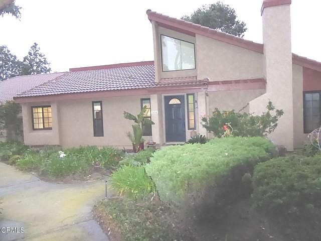 Tennis anyone? Enjoy the active lifestyle of this Via Pacifica Walk home! The complex boasts a pool, spa and two tennis courts. Or take a short stroll to the Seabridge waterfront complex across the street! Shopping, dining and boating are yours to enjoy.This well laid out two bedroom, one and a half bath home features high ceilings, step down living room with fireplace, spacious master bath with dressing room, and both front and rear patios. A fold down ladder allows you access to a large attic area currently used as a hobby room, with loads of storage. The two car garage is accessed through your private front patio, and holds the laundry facilities. Located on a large cul-de-sac the lush greenbelt in front of the home is like a fairyland garden!Bring your paintbrush and toolkit as this home is a cosmetic fixer!