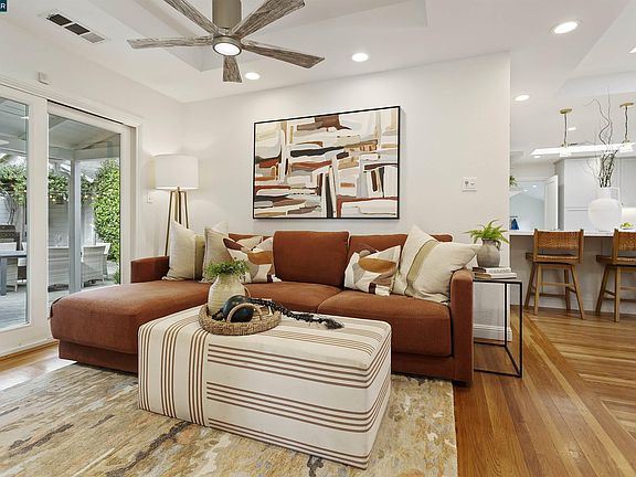 Nestled in a charming neighborhood, just blocks from restaurants, Diablo Foods, Brook Street Park, and Lafayette Elementary School, this white picket fenced single-story home offers 1741 sq ft of living space on a 6969 sq ft lot. With a level front yard and a covered front porch, this home exudes warmth and character. The home features 3 bedrooms, 2 baths, plus a bonus room, and a detached oversized two-car garage that could be converted into an ADU. The long driveway provides ample parking space for up to 4 cars. The fenced backyard includes a large, level lawn, covered patio, and a tree-covered sitting area, perfect for outdoor relaxation. The remodeled kitchen (2023) is a standout, with custom cabinets, high-end appliances, and Waterworks fixtures. A cozy eating area is complemented by a fireplace with a Fireclay tile hearth, adding charm to the space. The primary bedroom retreat offers a remodeled en-suite bath with a mosaic tile shower, Waterworks features, marble double vanities, and a large walk-in closet. A spacious front bedroom could serve as a den, while the third bedroom, with a backyard view, is conveniently located near the full bath. A large bonus room with laundry provides flexible space for an office or exercise area, enhancing the home’s versatility.