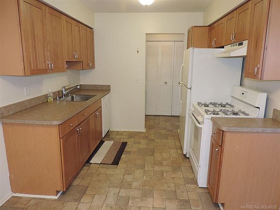 LAND CONTRACT TERMS include monthly association fee. Upper unit with brand new carpet, linoleum and dishwasher. Maple kitchen is 5 years new. Newer interior 5 panel doors. Private balcony off large living room to enjoy the lake breezes. Stove and Refrigerator included in sale. Private storage locker just outside the door. Quarter washer/dryer on 1st floor. Association fee includes water, gas, outside maint, snow, grass. AC unit being replaced by association.