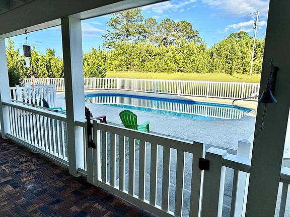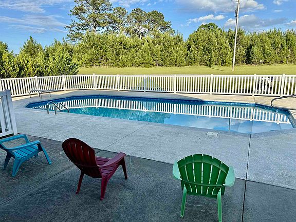 Beautiful 32 acre country estate features a 3bdrm/3bath home. Enjoy salt water pool, safely enclosed by a vinyl fence off a covered, deep porch, great for entertaining. Home is updated inside and out with top of the line products: fiber cement and lap siding, Galvalume metal roof, large 2-car garage with storage room & large, brick-floored sun porch, energy efficient insulation, low argon double pane windows, high-quality doors, lead crystal doorknobs, granite countertops, stainless appliances. Huge basement with kitchenette, living area, 3 more bedrooms, and full bath! NO carpet in house---floors are refinished wood, new brick, travertine tile, marble and stained concrete. Newly constructed pond is filling up and is stocked with fish. Site-built shooting house. Wildlife abounds--i.e., deer, turkey, quail, and even gopher tortoises! Variety of fruit trees and other things like pear, plum, blueberry, blackberry, pecan, walnut etc. High speed fiber optic internet, up to 2 gig available.