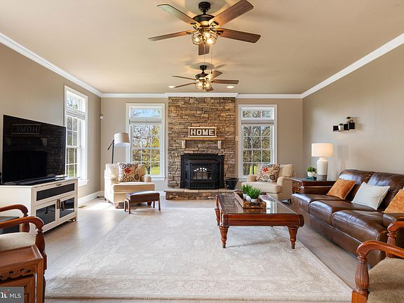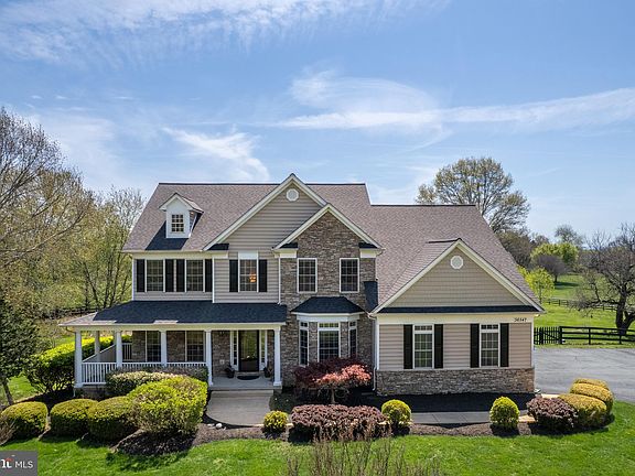 Follow the aptly-named Tranquility Road to the bucolic neighborhood of Farmington on the Green to find your next home! This gorgeous colonial sits on over three acres on the lovely and quiet Innisbrook Circle with a lovely wrap-around porch. It features formal living and dining rooms with crown molding on the main floor along with a large, roll-your-sleeves-up-and-cook kitchen with stainless appliances and granite counters. A large counter overlooks the breakfast nook and a large family room all warmed by a pellet stove. Upstairs is a spacious primary suite with a brand new shower, tiling and glass. The suite also has a cozy sitting room with a gas fireplace as well as two walk in closets. Three other upstairs bedrooms and an upper level laundry are complimented by fifth bedroom or office and full bath on the main level. A three-car garage enters into a spacious mud room, also plumbed as a second laundry. Many of the home's systems are upgraded and nearly new including a 2023 HVAC, 2022 new roof, and 2020 hot water heater. For outdoor living, a huge deck overlooks a large back yard with views toward the sunset . Less than two miles from downtown Purcellville, Farmington is a historic neighborhood, with lovely open spaces throughout the community. It is adjacent to and with easy access to Franklins Park's 200 acres of hiking trails, water park, fishing pond, tennis courts, base ball and soccer fields as well as a Performing Art Center. Sit on your deck and enjoy the park's fireworks on July 4th. Farmington on the Green is the perfect combination of peaceful country living and proximity to town and commuting options. Come visit today!