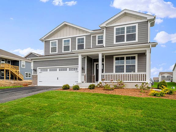 Imagine yourself at 3655 Ancient Oak Drive in Elgin, Illinois, a beautiful new home in our Highland Woods community. This home will be ready for a winter move in! This large, scenic homesite includes Hardie siding, a front porch with railings, and fully sodded yard. The Coventry plan offers 2,932 square feet of living space, including 4 bedrooms, 2.5 baths, 9-foot ceilings on the first floor, a look-out basement, and 2-car garage. Entertaining will be easy in this open-concept kitchen and family room layout with a large kitchen island with an overhang for stools, 42-inch designer white cabinetry with crown molding and soft close drawers. Additionally, the kitchen features a butler's pantry, modern stainless-steel appliances, quartz countertops, and easy-to-maintain luxury vinyl plank flooring. More flexible space is waiting upstairs in the 2nd floor loft, offering unlimited potential to suit your needs. Enjoy your private getaway in the primary bedroom with a large walk-in closet and private bath featuring a raised dual bowl vanity, luxury vinyl plank floors, quartz vanity top, large shower with tiled walls, and a linen closet. Convenient walk-in laundry room, 3 additional bedrooms with a full second bath, and a linen closet compete the second floor. All Chicago homes include our America's Smart Home Technology, featuring a smart video doorbell, smart Honeywell thermostat, Amazon Echo Pop, smart door lock, Deako smart light switches and more. Photos are of similar home and model home. Actual home built may vary