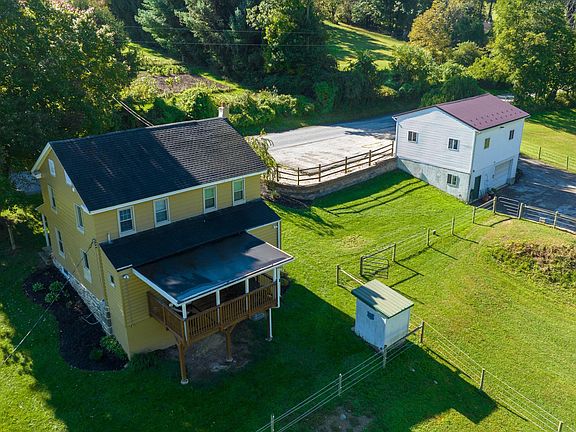This is a unique and rare find! Over 5 acres and completely renovated farmette! Charm and character shine throughout the farmhouse featuring original woodwork and refinished wide plank hardwood flooring; yet, everything is updated! You will love the modern kitchen with quartz countertops, white cabinetry, and stainless steel appliances. A spacious living room is located directly off of the kitchen. A laundry room and powder room are conveniently located on the main level. Step out onto the covered rear deck that offers amazing farmland views and you can listen to the babbling creek. The upper level features two nice sized bedrooms, a remodeled full bath, walk in closet, and an additional room off of the master bedroom that can be used as a sitting room, craft room, nursery, or extra storage! Bring your tools and equipment to utilize the 32 x 30 pole barn and two story detached garage. The pole barn includes water, electric, and a hay loft. There is already a stall built and has room for 4 stalls. Fenced in pastures, run in shed, chicken coop, and plenty of land to play! You don’t want to miss out on this unique opportunity to own this move in ready farmette!