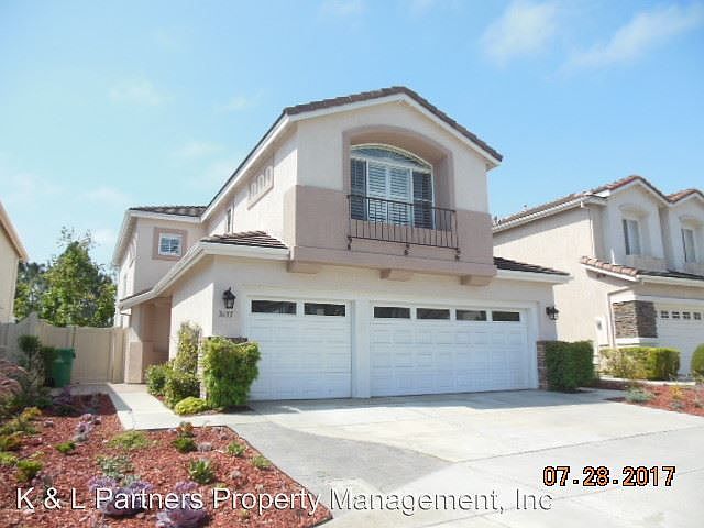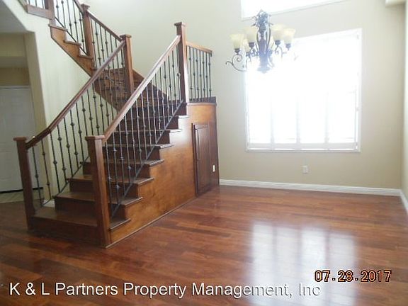 BEAUTIFUL 5 BEDROOM PLUS OFFICE LOCATED IN A CUL DE SAC - This expansive 5 bedroom 3 bath home offers a wonderfully flexible living arrangement with lots of thoughtful upgrades. In this home you will find a full first floor bedroom out fitted with a built in Murphy bed/desk combo and a full bathroom, so convenient for your guests. The downstairs also boasts gorgeous solid hardwood floors through the living area including the formal living room, dining room and kitchen. There is a cozy fireplace in the family room and the custom wrought iron stair rail is a beautiful addition as well. The kitchen boasts *Granite Counters *Large center island * Gleaming white cabinetry *Gas stove *Stainless steel appliances *Large pantry and lots of cupboard space *Tile floors The indoor laundry room comes complete with a full size washer and dryer and is conveniently located just off the garage entrance. Upstairs you will find 3 additional bedrooms and a flexible room with etched glass double doors that is perfect for an office or den. The master bedroom suite is large with a walk in closet and the master bath has a long granite vanity with dual sinks and a separate soaking tub and large step in shower The hall bath also has dual sinks and a nice tub/shower combination. Outside the yard is very low maintenance and the covered patio makes it a great space for entertaining. The gardener is included. This home has central heat and central air conditioning. SORRY, NO PETS For more information or to schedule a viewing please contact K & L Partners Property management at (858) 486-1556 You can apply online at our website klpartnerspm.com. go to this address and click on the "apply" button. CA BRE LIC # 01877647 No Pets Allowed (RLNE3456209)