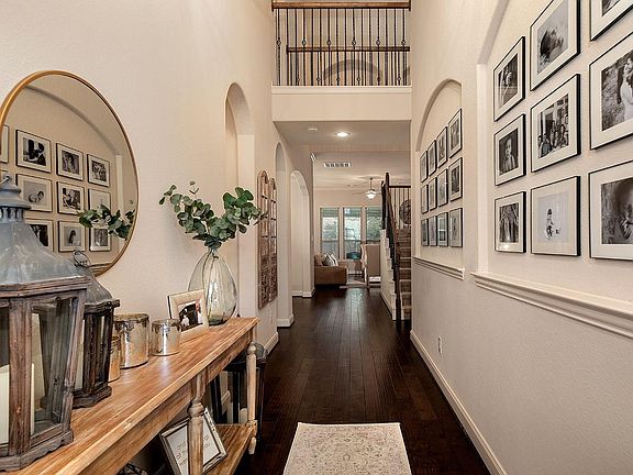 Incredible Lennar home on a cul-de-sac street in The Falls at Imperial Oaks! Great curb appeal with lovely brick and stone elevation, soaring ceilings, neutral paint palette, upgraded lighting and cabinetry, 8 ft. doors throughout downstairs, high baseboards, art niches, crown moulding, installed whole house generator in 2020, and so much more! Covered front porch, two story entry, elegant formal dining; open concept island kitchen with breakfast bar, granite counters, under cabinet lighting and stainless steel appliances overlooks the breakfast room and den with gas log fireplace; owner's retreat and one bedroom down; two additional bedrooms and game room up; fenced yard with covered and tiled patio; walking distance to Birnham Woods Elementary, as well as neighborhood amenities including a pool, clubhouse, fitness center, tennis courts, dog park, and playground.
