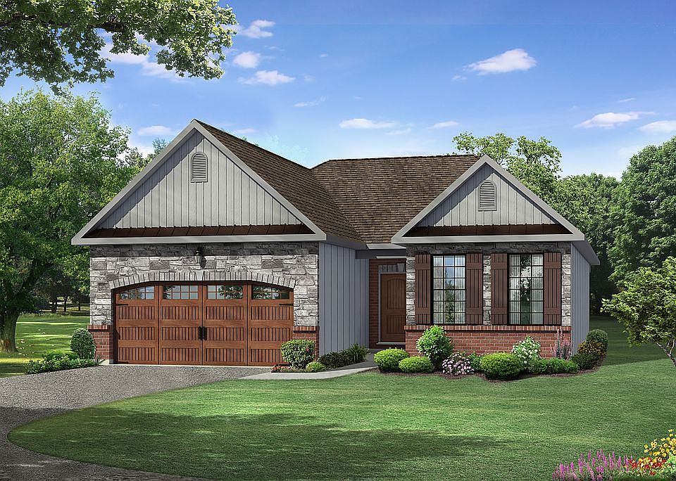 Garland I model in The Fields at Indian Creek, Kay Builders first 55+ active adult community. This home has an open floor plan encompassing the great room, kitchen and dining area. The kitchen has quartz countertops, stainless steel appliances, along with plenty of cabinet and pantry storage space. The master suite is in the back of the home for privacy.