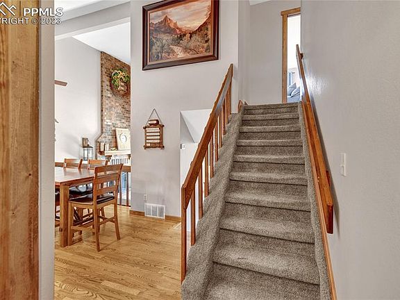 Views! Location! Beautifully maintained D20 home in Briargate. NO HOA!!! Amazing unobstructed views of Pikes Peak! 3 Beds and 3 baths! Quiet neighborhood close to shopping, parks, award-winning schools, hospitals, and entertainment. New exterior paint as of Oct 2023! A new roof will be installed prior to closing! Large backyard with amazing mountain views and a fire pit. Vinyl windows. The main level boasts a modern kitchen with newer stainless appliances, granite countertops, tons of cabinetry for storage, and hardwood floors. The kitchen flows into the large dining area and lower living room. The main dining living area feels majestic with vaulted ceilings, a large brick wood-burning fireplace, and walks out to the backyard. Newer luxury vinyl plank flooring throughout the main level. Easy main-level living with its own bedroom, 3/4 custom bathroom, laundry room, and living room and kitchen. The primary bedroom has a private walkout to a deck with perfect views of Pikes Peak and much of Colorado Springs's front range. The primary bedroom also has Luxury Vinyl Plank flooring, a sitting area, and an AMAZING custom bathroom that you need to see to believe. Prepare yourself for amazing sunrises and sunsets with these views. Great for entertaining! A large two-car garage will protect your cars from hail or store all your Colorado adventure toys. Come check out this amazing deal before it's gone!