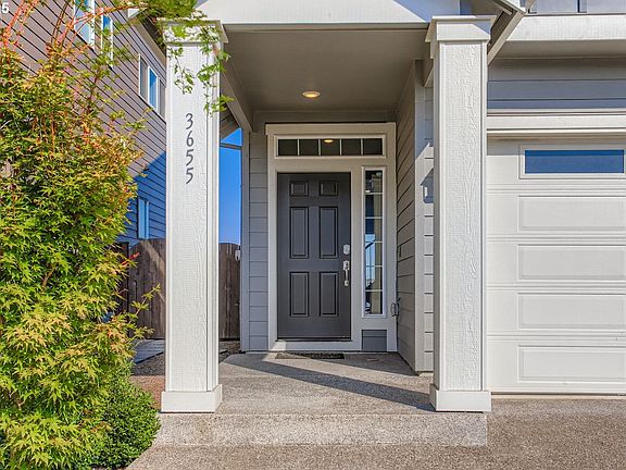 Welcome to this light and bright home that perfectly blends comfort and style. The open living space features a cozy gas fireplace and abundant windows that fill the rooms with natural light. The kitchen is beautifully appointed with granite counters, stainless steel appliances, a gas range, and an island with bar seating. Ideal for casual meals or entertaining. Upstairs, the spacious primary suite offers a tray ceiling, an ensuite bathroom with dual sinks, and a large walk-in closet. Convenience is built in with an upstairs laundry room, while the loft provides flexible space for an office, play area, or lounge. Step outside to a fully fenced backyard with a patio where you can enjoy sweeping territorial views of the surrounding hillsides and, on clear days, even glimpses of Mt. Hood beyond the trees. With no homes behind you, the backyard feels private and peaceful, opening to a field. The HOA takes care of exterior maintenance and front yard landscaping, allowing you more time to relax and enjoy this beautiful setting.