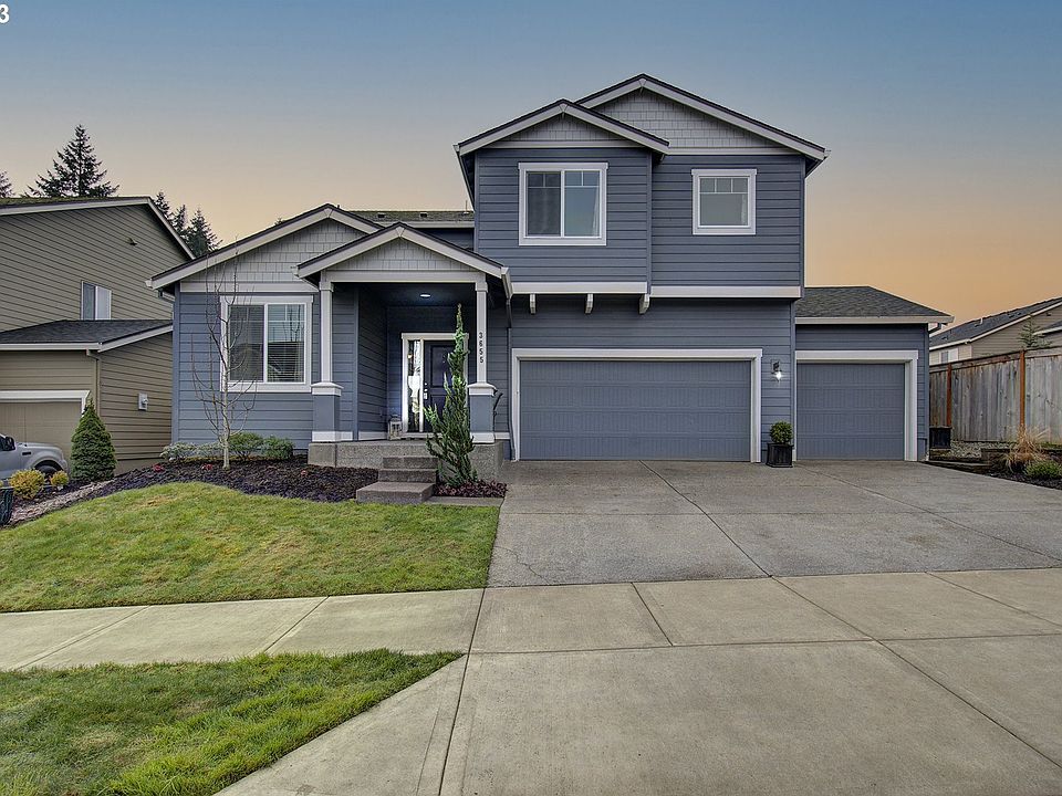 Gorgeous 4 bed, 3 bath, 3 car garage home in the desirable Ridgefield community! This stunning property has an open floor plan with spacious living areas, perfect for entertaining. The kitchen features granite counters, painted cabinets, SS appliances, island with bar seating. The master suite offers a large walk-in closet, dual vanities, soaking tub & walk in shower. Other highlights include main floor bedroom, 5th bedroom/office, bonus room, fireplace, large patio & landscaped yard. Must see!