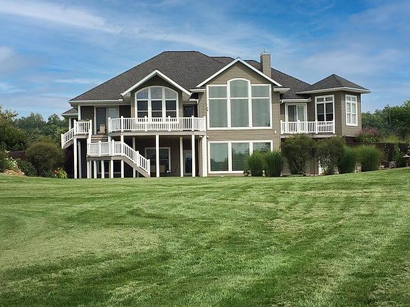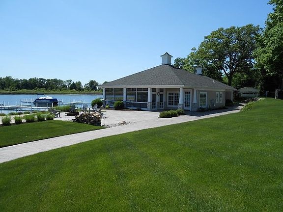 Amazing Luxury Lake Home located in Crooked Lake Beach Club. This gated, golf cart community provides a path that leads you directly to 500 feet of beach located on Crooked Lake. There a community beach club awaits you (screened porch, large kitchen/gathering room, two bathrooms, breezeway, firepit and more). It provides the ultimate, carefree lake enjoyment and entertaining. Included is your private storage unit for your lake toys and two private boat slips on the docks that go in and out each year without you lifting a finger. Crooked Lake is an 828-acre all-sports natural lake with easy access from I-69 or 80/90 turnpike. The extraordinary home is situated on 1.5 acre beautifully landscaped lot. Your view is over your beautiful back yard onto Crooked Lake providing year-round panorama of nature. This home features: • Open floor plan with 4 bedrooms/4.5 bathrooms (two master suites on main level) • Oversized kitchen (every chef’s dream) with custom cabinetry, 2 dishwashers, wall oven, microwave/convection oven, warming drawer, gas cooktop, 2 large refrigerators, huge island with bar seating connected to a 3-season room. Two pantries and tons of storage as well. • Gorgeous glass double doors in the foyer open into the Great Room with floor to ceiling windows with motorized shades overlooking Crooked Lake. This room offers a natural gas fireplace and wet bar. • Dramatic curved wall leads you into the elegant master suite with ambient-lite tray ceiling, separate sitting area with a balcony. Great sunset views over the glistening lake. Two walk-in closets, one with built-in shelves for the ultimate shoe collection. The ensuite bathroom has dual vanities, ceramic floor and massive two-person shower. • Second master with ensuite open onto back deck overlooking beautiful, landscaped yard as well as Beach Club House and lake. • Lower level accessed by two separate stairways is essentially a second home. It offers two bedrooms, two+ bathrooms, full kitchen, library and massive great room with stone fireplace and the perfect location for your family movie nights. An unfinished workshop area is also included. • The back patio has an outdoor kitchen, firepit and electric hook up for a hot tub. • Other endless amenities include. Irrigation system, two geothermal units, 2 water heaters, and central vac. • A 30’ x 64’ Pole Barn on a separate lot within the gated community is included. You get the best a both worlds with this home – lake living an