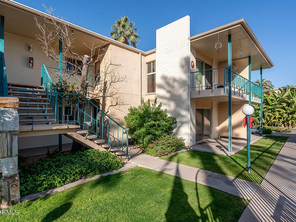 This renovated condo is nestled in a Mid-Century district located within steps of Light Rail & the New Park Central mall shops & restaurants. Baths have upgraded vanities & all new Showers/baths. Polished Epoxy floors, fresh paint & new lighting. The primary suite offers a dual closet and ensuite bath, while the second full bath features a spacious tub/shower. Enjoy the LARGE open space of green grass in front of your unit with Gas bbq, Heated pool & Spa. Retreat to your large patio space poolside. Washer/dryer. Pets & rentals OK. Prime LOCATION. Pictures say it all. SHORT TERM RENTALS OK. Unit comes w/ Extra storage shed on property-- HOA includes ALL UTILITIES & INTERNET