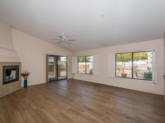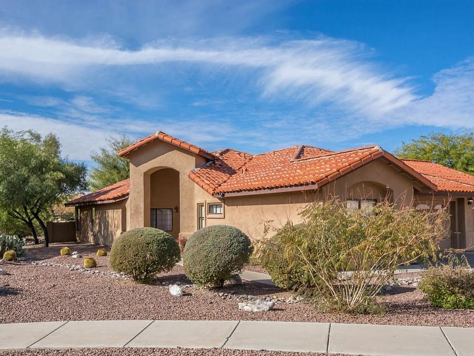 This Sabino Creek Stunner with fabulous versatile floorplan is light & bright, has high vaulted ceilings, plantation shutters & a bonus studio. Amazing kitchen offers lovely granite, lg island, breakfast nook & tons of cabinets w/pull-outs. Spacious greatroom is open to the kitchen & offers a dramatic FP & large picture windows. Lovely bkyd w/covered patio has beautiful vegetation & extends well beyond the fenced area. Impressive Mstr Ste w/lg walk-in closet & wonderful bath w/garden tub, separate shower, dual vanities & granite counters. The fabulous 238 SF studio off garage has mini-split and is ideal for an art studio, gym, workshop (formerly the 3rd car garage, but could easily be converted back if desired). Close to Sabino Canyon Rec area & great shopping & dining, this is the one!