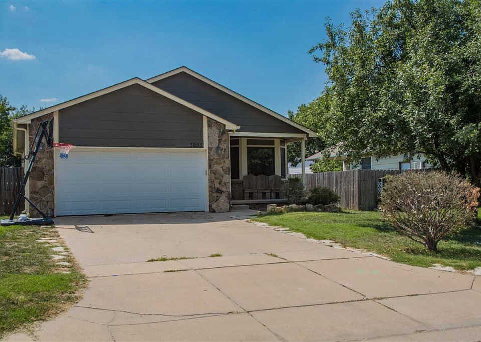 Welcome home to this fantastic 3 bedroom ranch in southwest Wichita! Located in the Haysville School District, this home features a great layout and plenty of space. As soon as you pull in you'll notice the outstanding curb appeal. There's a two car garage, mature landscaping, and the home has a beautiful stone facade. Step up to the covered porch that has space for a seating area and enter the home to find a living room with beautiful bay windows and gleaming wood floors. The kitchen boasts tons of cabinets and counter space, and there's a sliding glass door that leads to the covered back patio. The master is spacious and has BRAND NEW carpet! An additional bedroom and a full bathroom (remodeled in 2015!) complete the main floor. Downstairs you'll find a family room that could be used as an entertainment space, a sitting room, or a play room. There are so many options! A third bedroom and a second full bathroom provide so much room to spread out. The back yard offers a covered patio and a big storage shed, and it's fully-fenced for your privacy and safety. Nestled away from busy streets, this home is still located close to schools, Pawnee Prairie Park, and all the conveniences of Haysville and south and west Wichita. Schedule your private showing today before it's gone for good!