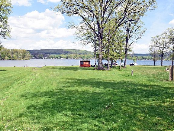 Own your own year round piece of paradise on Lamoka Lake, with 98 feet of water frontage. Situated on 1.23 acres with a large water front and level yard overlooking the lake. Also a secluded back yard with an above ground pool right off the large lanai. 2,800 square feet of living space. The main floor has a huge great room with a kitchen and granite countertops, two bedrooms, full bath, and laundry. Plus there is a loft overlooking the great room. Lower level has a owner's suite and a large relaxing recreational room with a lanai which opens out to the pool. Lanai has a pellet stove for winter fun. Comes with the Howard Hanna 100% buy back program, conditions apply.