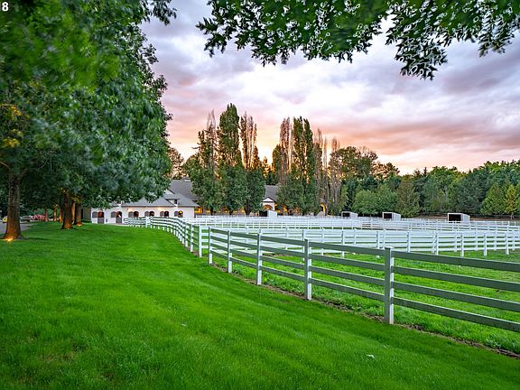 A stunning 25 acre gated, private, riverfront estate complete with premium equestrian facilities, 2 homes & 2 docks. Manicured and landscaped with life-size treehouse, play house, lots of walking trails, play-ground, ponds, springs and views of the Willamette River. Tennis, private pool with cabana facilities and bar, private dock, recreation rooms, personal gym, 7-car garage and private courtyards. Dual entry barn with indoor arena.