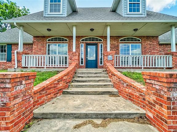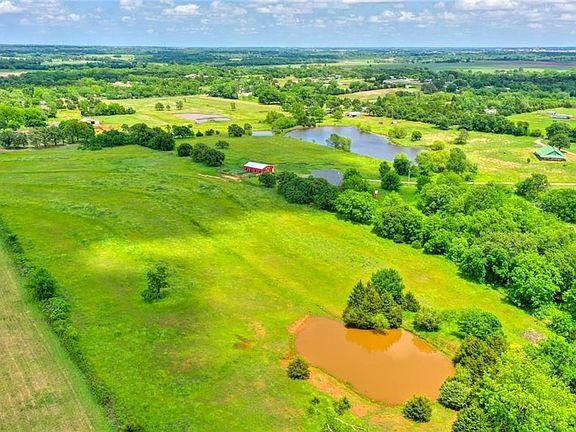 "Private Country Setting" best describes this unique find in Bethel School District. 24.27 acres, large pond plus 3000 sq. ft custom home. This is a perfect setting overlooking the pond from the front porch. This spacious home offers tall ceilings and well thought out floor plan. The living room boasts a large, brick fireplace with gas logs. The split bedroom arrangement offers privacy for the spacious master suite which offers closet space to admire. This home also has a formal dining, home office space and a versatile bonus room upstairs. The bonus room could be used for many different purposes, it is spacious and contains a separate HVAC unit for this space. There is also a 36x48 barn with 4 stalls, all with Priefert stall fronts and outdoor runs for each one, hot water, electric and 12x12 insulated feed/tack room. This remote setting is absolutely perfect for the buyer wanting:PRIVACY, ACREAGE, SQUARE FOOTAGE &/OR EASY COMMUTE TO OKC METRO. Much to offer at this price point!