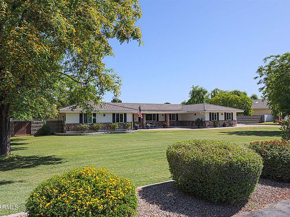 Located on a tranquil cul-de-sac enclave of just 10 unique, custom-designed residences, this single-level home on almost an acre irrigated lot has both an interior flexible floorplan and an outdoor setting ideal for entertaining, recreational sports PLUS a huge amount of private space but with NO HOA Fees! The fenced Pebble Tec Pool with Waterfall adds to the peaceful atmosphere. The home features an attached, extended length, 3-car Garage plus detached, over-height, 1500+ Sq. Ft. enclosed RV Garage/Workshop and large, enclosed/gated parking area - plenty of room to house collector cars, boats, the RV and other toys and in close proximity to area lakes and parks. This well-constructed block home is beautifully landscaped, creating the ultimate in curb appeal and neighborhood ambiance