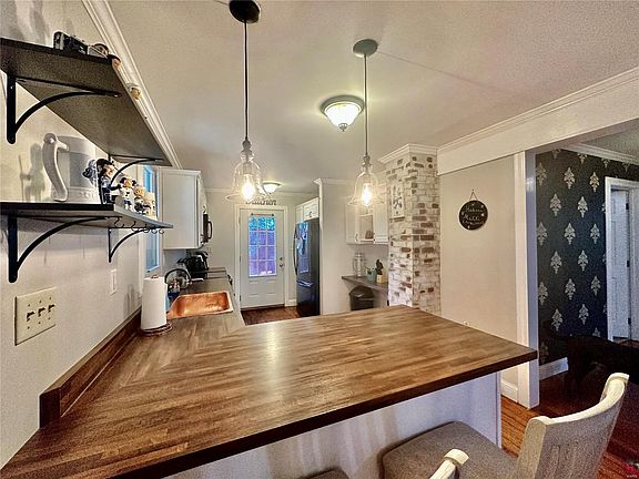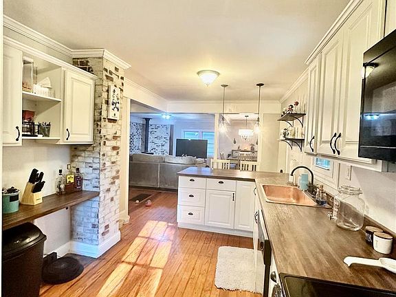 This home is your incredible opportunity to own an updated all electric 2 bedroom 2 bath home in USDA eligible area for 100% financing for those who qualify! The large front porch is covered and also has a wrap around deck that over looks the flat large yard. Open floor plan with beautiful original wood floors throughout most of the home, freestanding wood burning stove, butcher block kitchen counters along with some luxury vinyl floors are just some of the perks! The master bathroom has a beautiful double vanity, awesome shower and separate soaking tub. The 24x18 detached garage has a concrete floor and electric along with 2 man doors. Need even more storage? There's a shed for that too! Septic, roof and siding all new in 2020.