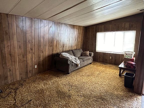 This sweet little barn style manufactured home sits on a large corner lot. It has a front partially enclosed front porch and a ramp to the back door. Inside you have a large living room a combination dining room and a cozy kitchen with refrigerator and gas stove. There are all newer dual pane vinyl windows, a 4 year old hot water heater, and a 4 year old furnace. The roof is approx. 10 years old and it has a great little garden area in the back yard. A detached carport for under cover parking and a storage shed are also included. Primary bedroom has a large walk-in closet and a vanity sink in the bedroom and a walk-in shower in the bathroom. There is a dedicated pantry in the laundry room. The hall bath has a tub shower. Check out this charmer.