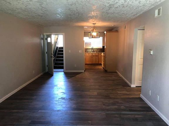 All new paint, wide plank hardwood floors, fixtures, appliances, granite countertops, new windows and blinds, new bathroom with new shower surround, new tile. Washer and Dryer in unit, ground floor Unit backing to green belt. Complex has pool and assigned parking and club house. 12 Month Lease. Renter pays Electric and Gas. HOA covers water and trash etc.
