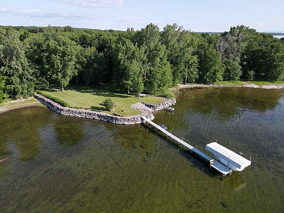 Located on the west shore of Isle La Motte, is this hidden year-round lakefront home with 185ft of pristine Lake Champlain frontage. The home is set on 1.35 private acres that are surrounded by woods. The lake frontage is located on a point giving you expansive views of the crystal clear lake. There is a boat launch, a large seawall, and a gradual sandy lake shore ideal for enjoying the water. The one-level, 2-bedroom, 2-bath home has an open kitchen and living area with views of the lake. The kitchen features vaulted ceilings with skylights, Corian countertops, an electric range, a wall oven, and ample cabinets. The large picture windows in the living room look out to the sprawling lawn with the lake in the distance. You will stay warm with the Weso Ceramic Wood Stove and radiant heat. There is plenty of storage space with a 2-car attached garage and an RV garage both with storage above. In 2005 an office and second bathroom were added to the home as well as the garages. Don't miss this incredible opportunity to own a year-round sanctuary on the shores of Lake Champlain.