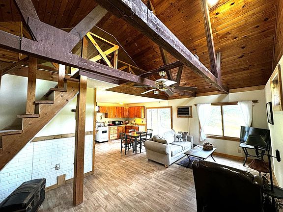 Escape to tranquility with this charming rustic country home nestled on 4.38 acres of picturesque land in Backus, MN. Step inside the cozy 2-bedroom, 1-bathroom home and feel the natural warmth from the tongue-and-groove vaulted ceilings to its exposed beams creating a welcoming atmosphere. The open floor plan allows for seamless living and entertaining while the vaulted ceilings enhance the home’s rustic appeal and create a sense of openness and light. The home features a recently installed septic system, ensuring worry-free living. Storage space will not disappoint with two pole buildings, a 24x32 equipped with electricity, concrete flooring, and a single vehicle stall plus a 20x32 pole building for additional equipment, tools and toy storage. Offering both comfort and practicality whether seeking a weekend getaway or primary residence. Make this delightful property your own! Schedule a showing now!