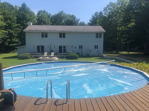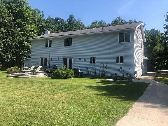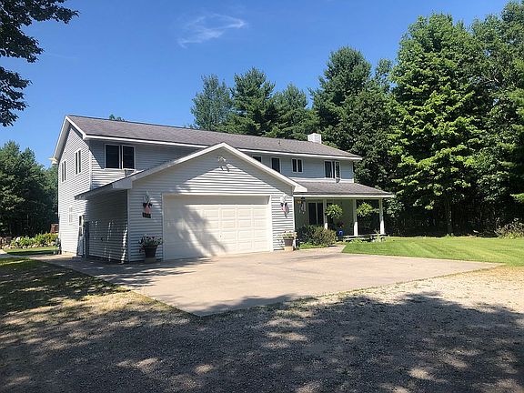 Enjoy all 4 seasons from the comforts of your own home! Located less than 2 miles from the Village of Topinabee resides this well built & maintained 3 bed, 3 bath home located on 10 acres of mature trees. The home boasts oak flooring in the kitchen, dining room, & foyer w/ a 4' wide staircase leading to the master bedroom ensuite w/ jacuzzi tub & walk-in closet. The loft area would provide ample space for an office or additional sleeping for guests. There is plenty of room inside & out for all your entertaining & storage needs. In the backyard, a 27' above ground pool w/ swim deck & custom Tiki Bar sets the scene for endless fun. Concrete sidewalks lead the way to the 40'x60' pole building complete w/ radiant & wood heat, mezzanine, & front/rear 12'x12' doors for easy access drive-thru