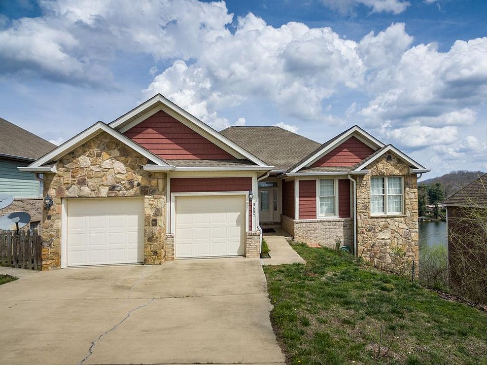 Sunrise views over Patrick Henry Lake are spectacular from many vistas in this brick 3 bedroom, 3 bath home. The open floor plan extends the large living area into the kitchen and dining areas; great for entertaining. The open kitchen features an island with a bar counter, making the space seem larger than its actual size. There are granite counter tops, a separate pantry and filtered water spout which delivers RO-filtered alkaline water. The great room as well as the lower level provide cozy fireplaces for those cooler seasons. The spacious main level master bedroom opens to the balcony with unobstructed lake views. New LED lighting, double vanities, a whirpool tub, and a separate shower enhance the master bath. Each bedroom has its own full bath and one opens to the lower level balcony. The lower level also offers a small area for your home office,over-looking the lake. Not only can you enjoy the lake view from inside but there is a refurbished concrete walk-way leading to a double-deck aluminum dock/boathouse on the lake where the water level remains consistent year round. Asking $350,000...